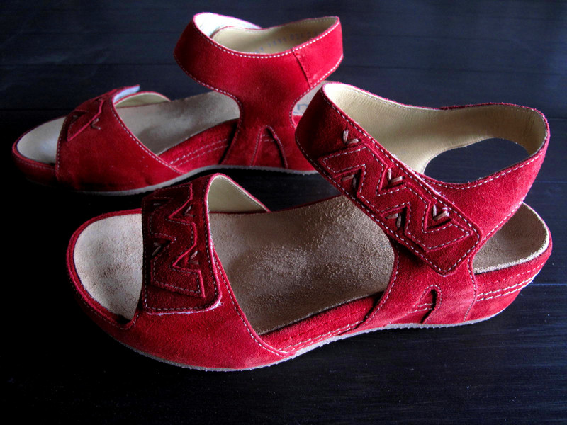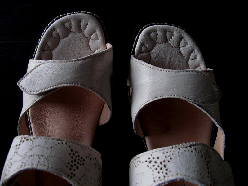 いつもの事ながら、新品の靴(サンダル)にナイフやハサミを入れるのはやはりドキドキするもの。